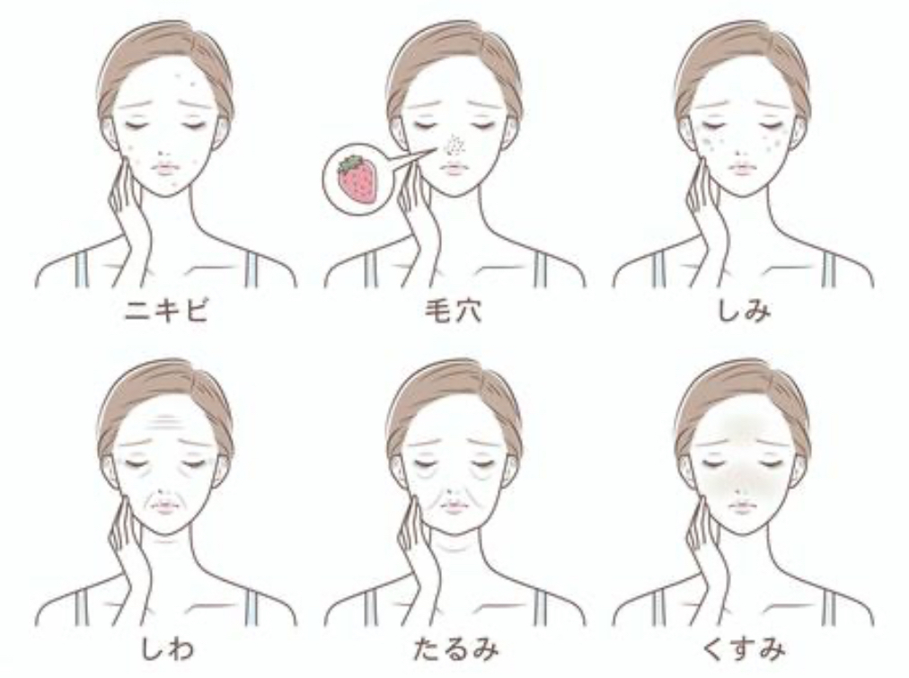 毛穴・たるみ・シミ・シワ・ニキビ・くすみ・乾燥など幅広い肌悩みを同時に改善が可能です。